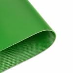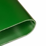 Transportband type 21-13SD PVC, groen, 2-laags flexibel weefsel (E), bovenzijde: 2,0mm + 1,0mm extra slijtvaste deklaag, onderzijde: 0,6mm + ruitprofiel, dikte 5,45mm, hardheid 92° ShA, kracht-rek 15N/mm, roldiameter 140mm, rol-, glij- en trogondersteuning, FDA goedgekeurd, olie- en vetbestendig, temperatuur -10°C tot 110°C
