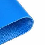 Transportband type 22-86/3W PVC, blauw, 2-laags breedtestabiel weefsel (RL/RXA), bovenzijde: 2,0mm + wavegrip profiel, onderzijde: geïmpregneerd, dikte 5,1mm, hardheid 35° ShA, kracht-rek 11N/mm, roldiameter 40mm, rol- en glijondersteuning, antistatisch weefsel, geluidsarm, temperatuurbereik -25°C tot 70°C