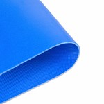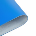 Transportband type FPS20-84I Fabplast® (PE), blauw, 2-laags frayless polyester weefsel breedtestabiel (RFLA), bovenzijde: 0,5mm, onderzijde: geïmpregneerd (0,2mm) + mattering, dikte 2,2mm, hardheid 90° ShA, kracht-rek 10N/mm, roldiameter 25mm, rol- en glijondersteuning, FDA/EU goedgekeurd, olie- en vetbestendig, frayless antistatisch weefsel, temperatuur -50°C tot 70°C