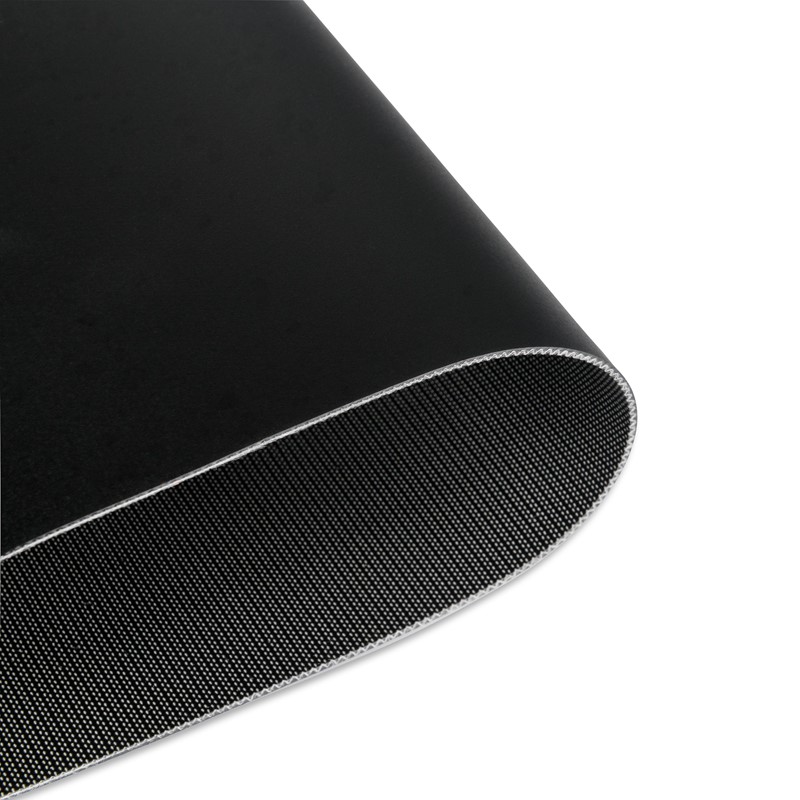 Transportband type FPS20-04I Fabplast® (PE), transparant, 2-laags frayless polyester weefsel breedtestabiel (RFLA), bovenzijde: 0,5mm, onderzijde: geïmpregneerd (0,2mm) + mattering, dikte 2,2mm, hardheid 90° ShA, kracht-rek 10N/mm, roldiameter 25mm, rol- en glijondersteuning, FDA/EU goedgekeurd, olie- en vetbestendig, frayless antistatisch weefsel, temperatuur -50°C tot 70°C