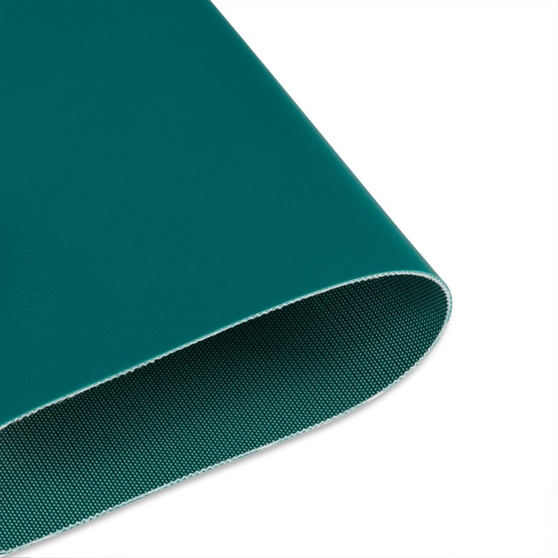Transportband type 22-81/A80/251/FG PVC, lichtblauw, 2-laags breedtestabiel weefsel (R), bovenzijde: 0,7mm, onderzijde: 0,6mm + ruitprofiel, dikte 3,25mm, hardheid 80° ShA, kracht-rek 10N/mm, roldiameter 40mm, rol- en glijondersteuning, FDA/EU goedgekeurd, antistatische deklaag, temperatuurbereik -15°C tot 90°C