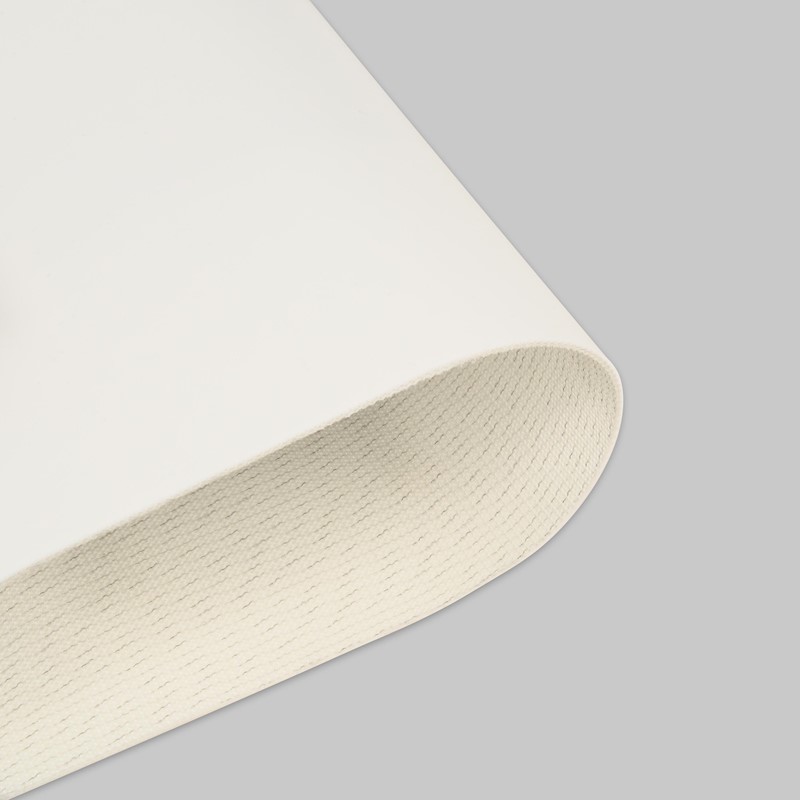Transportband type 31-28VD PVC, wit, 3-laags flexibel weefsel (E), bovenzijde: 2,0mm, onderzijde: 1,0mm + mattering, dikte 6,25mm, hardheid 80° ShA, kracht-rek 23N/mm, roldiameter 120mm, rol- en trogondersteuning, FDA/EU goedgekeurd, antistatische deklaag, antistatisch weefsel, vlamdovend, temperatuurbereik -15°C tot 90°C