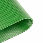 Transportband type 22-81/A80/251/FG PVC, lichtblauw, 2-laags breedtestabiel weefsel (R), bovenzijde: 0,7mm, onderzijde: 0,6mm + ruitprofiel, dikte 3,25mm, hardheid 80° ShA, kracht-rek 10N/mm, roldiameter 40mm, rol- en glijondersteuning, FDA/EU goedgekeurd, antistatische deklaag, temperatuurbereik -15°C tot 90°C