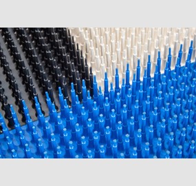 De flexibele naalden houden de producten daarbij stevig en stabiel op hun plek waardoor hogere bandsnelheden mogelijk zijn. Verkrijgbaar in blauw, zwart en wit.